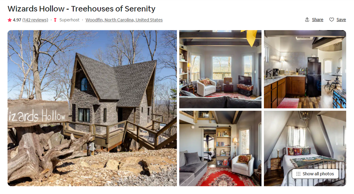 “Wizards Hollow” is a Harry Potter-inspired treehouse nestled in the North Carolina Blue Ridge Mountains, according to Airbnb.