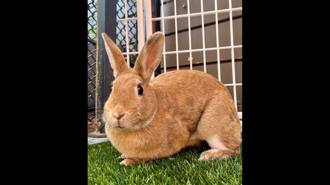 “She is healthy, uninjured and doing well in our care,” officials said. A second photo shows the brown-furred rabbit in her new home.