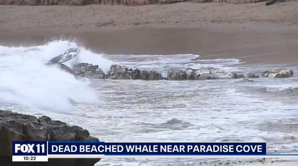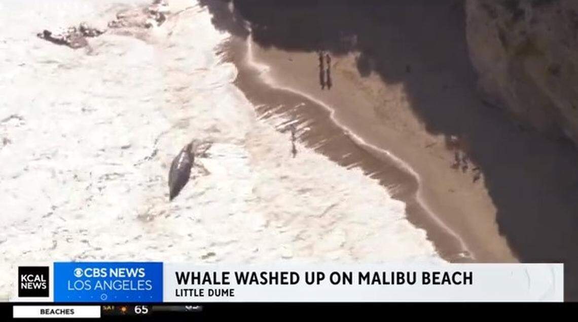 The 25-foot-long body was seen washed ashore Saturday, March 16, at Little Dume Beach, KCAL reported.