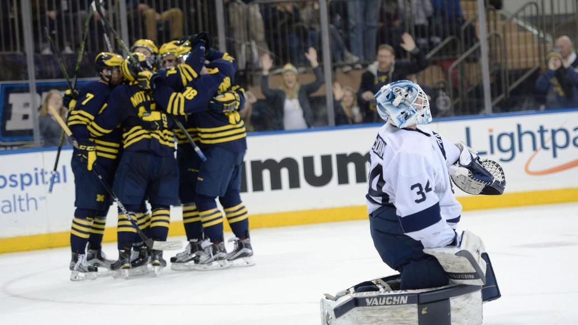 The No. 4-seeded Nittany Lions will meet the No. 5-seed Wolverines at 8 p.m. Thursday at Detroit’s Joe Louis Arena.